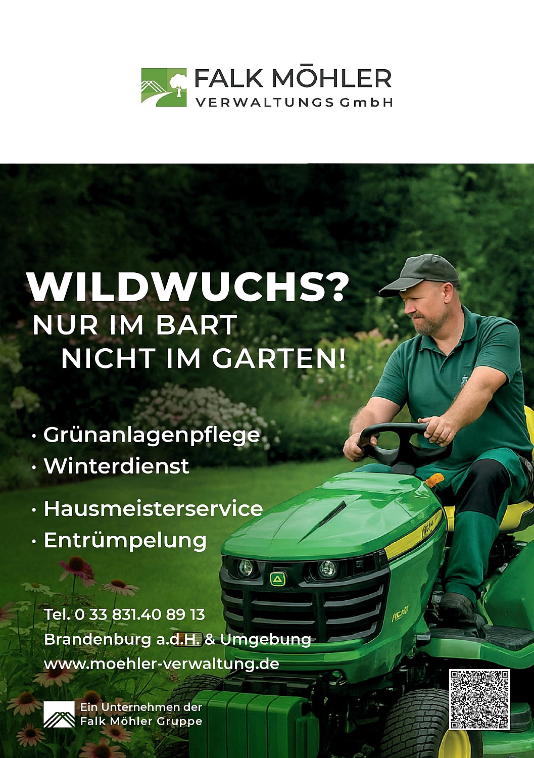 Ob die Hecke aus der Form gerät, der Gehweg vereist ist, der Wasserhahn tropft oder sich der Keller langsam in ein Heimatmuseum verwandelt – wir bringen Ordnung rein. Unser Team übernimmt Grünpflege, Baumfäll- und -schnittarbeiten, Hausmeisterservice, Winterdienst und Entrümpelung – pragmatisch, verlässlich und mit einem feinen Blick fürs Detail. Für Unternehmen, Verwaltungen und Privatpersonen in Brandenburg und Umgebung.