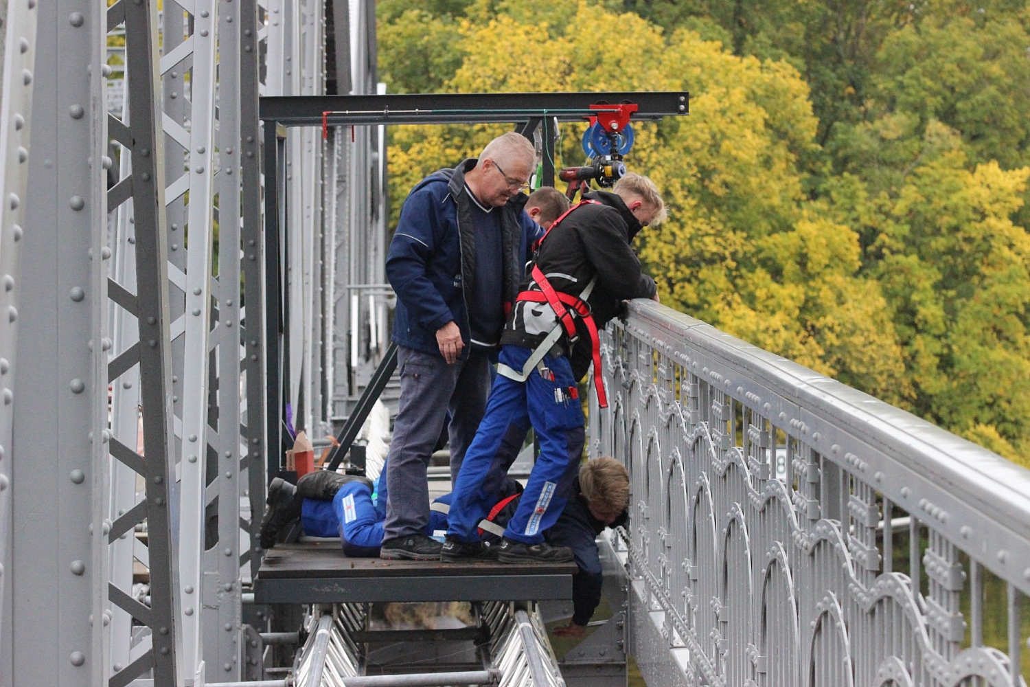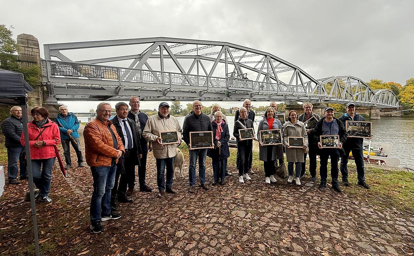 Denn die braucht weiterhin viel Geld, besteht das Geländer aus insgesamt 60 Elementen. Bei Denkmalpflege und BI hofft man auf sechs Elemente pro Jahr. Im Mittelteil der anderen Brückenseite wurden Teile geborgen, die offensichtlich in einer schlechteren Qualität nach einem Unfall mit einem Panzer ersetzt wurden. Die Restaurierung dürfte somit teurer werden. „Die Brücke sollte die nächsten 100 Jahre keine großen Probleme machen“, so der Landeskonservator Thomas Drachenberg, der mit seinen Fachreferentinnen Viviane Taubert und Stefanie Veeck angereist war. Auch die hiesige Denkmalpflegerin Katrin Witt war vor Ort. Zumindest sind auch für das kommende Jahr wieder 30.000 Euro möglich, so dass erneut die gleiche Summe an Spenden aufgebracht werden muss.