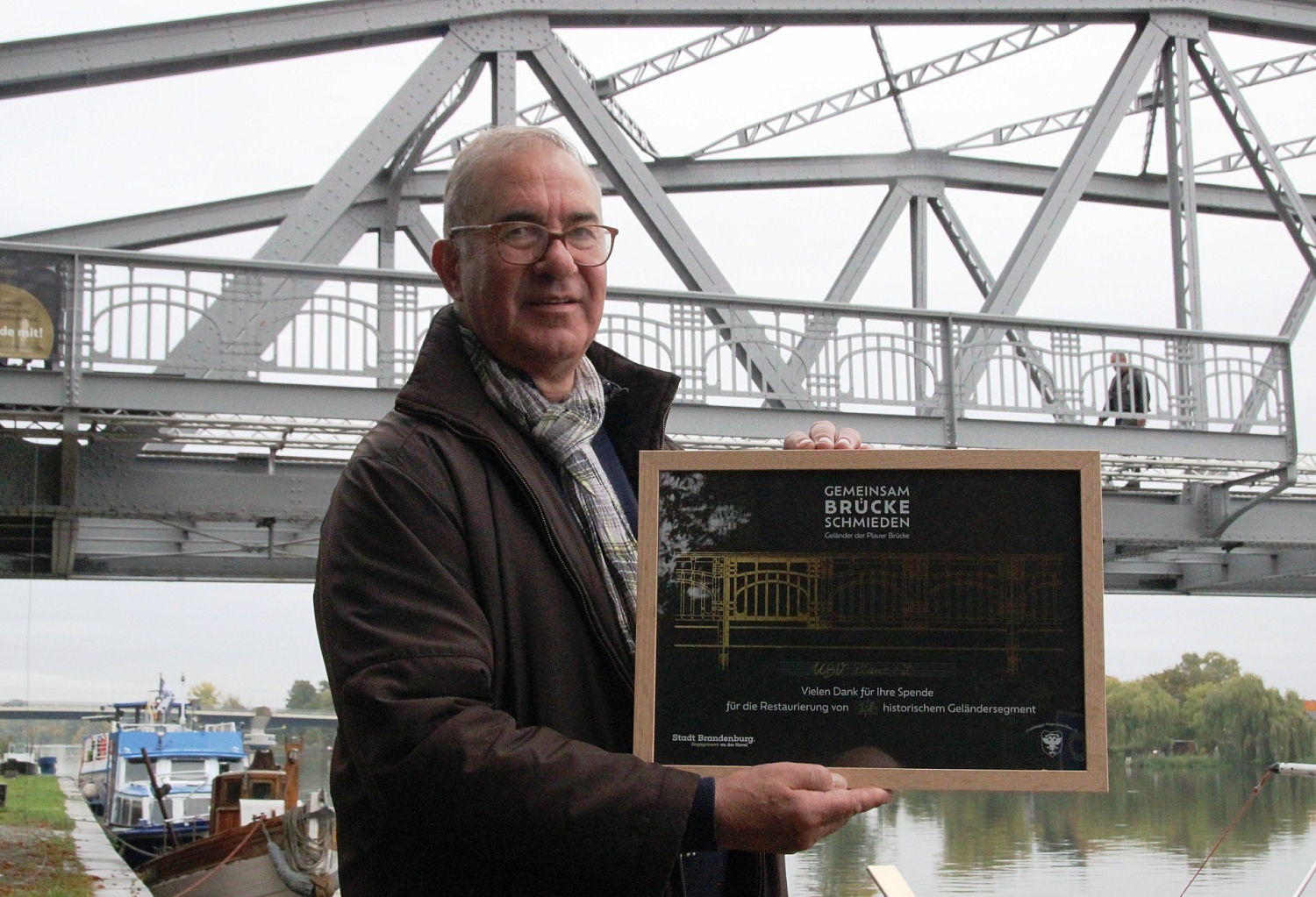 Den Löwenanteil an den Rechnungen in diesem Jahr beglich die Landes-Denkmal-Behörde, die 30.000 Euro an Fördermitteln überwies. Die gleiche Summe musste als Eigenanteil aufgebracht werden. Die Firma Windeck spendete 16.000 Euro sowie Renate und Klaus Windeck weitere 8.000 Euro. Und 4.500 Euro kamen von der Stiftung der Volks- und Raiffeisenbanken. „Wenn wir auch künftig sechs Elemente pro Jahr restaurieren wollen, sind wir weiterhin auf Spenden angewiesen“, so Hartmut Logemann. Die BI selbst organisiert am Sonnabend von 8.30 bis 11 Uhr in Plaue, Kirchmöser und Wusterwitz eine Schrottsammlung. Für Selbstanlieferer steht ein Container auf dem Parkplatz der Kita Koenigsmarckstraße. Der Erlös ist für die Brücke bestimmt.