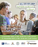 Im Rahmen der Oberbürgermeisterwahl laden die Volkshochschule, das Bündnis Zusammen in Brandenburg, das Café Contact und Mehr Demokratie e.V. zu zwei Dialogveranstaltungen ein. Im Mittelpunkt steht das persönliche Gespräch jenseits parteipolitischer Diskussionen.
