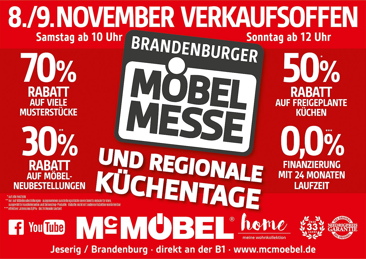 8. & 9. November 2025 - Möbelmesse & Regionale Küchentage bei Mc-Möbel - dem Einrichtungs-Fachmarkt mit der ORIGINAL Niedrigpreisgarantie
