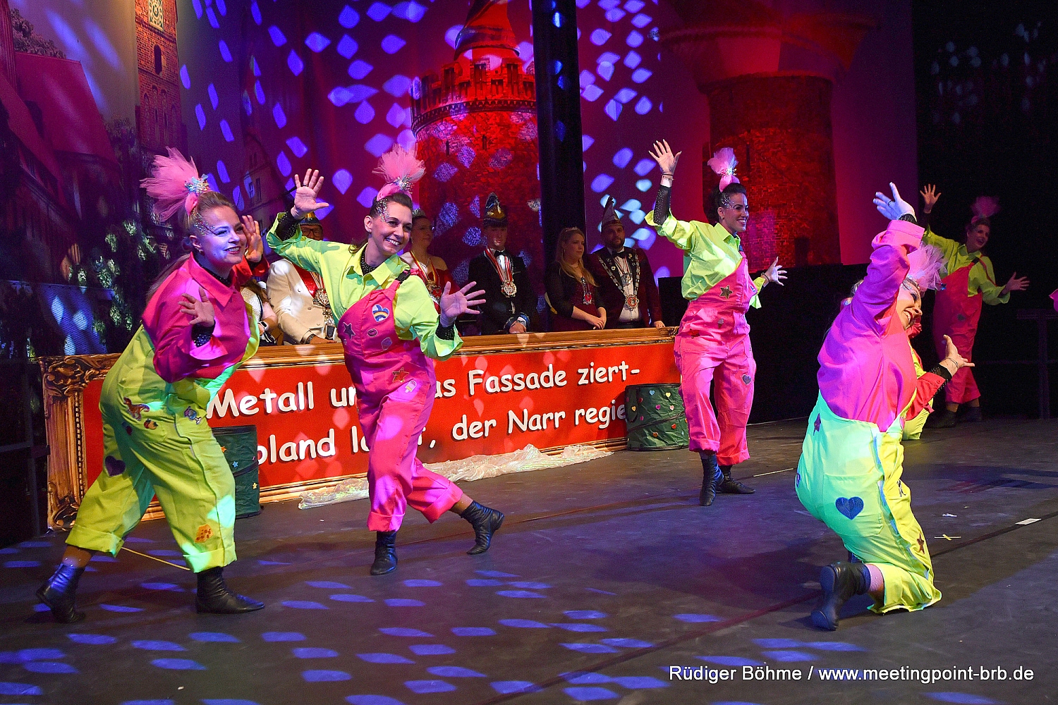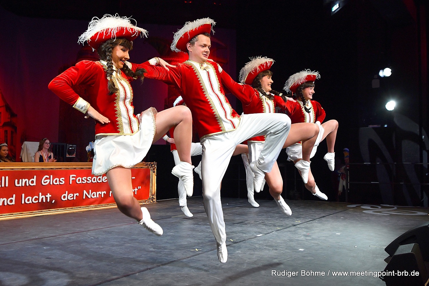 Die Garden und Schautanzgruppen des BKC sowie seine Büttenredner umrahmten diese Darbietungen und brachten den Saal zum Kochen. So wurde es wieder einmal ein gelungener Abend, der auch schnell die veränderte Platzsituation aufgrund des notwendigen Umzuges vom Großen Haus in die Studiobühne des Brandenburger Theaters vergessen ließ.