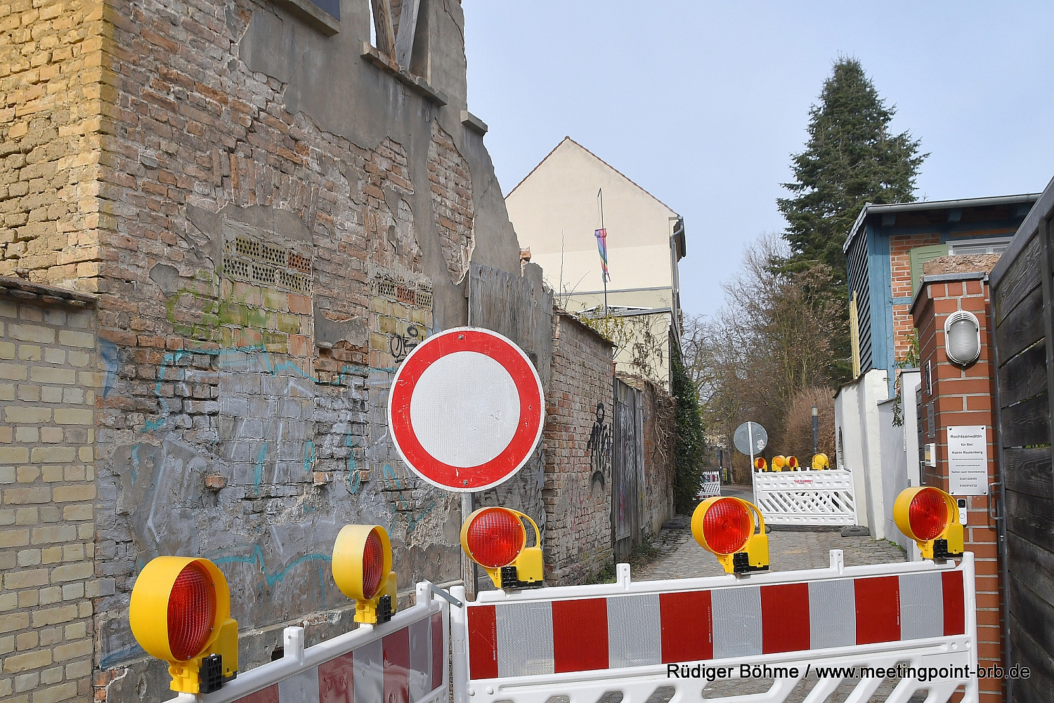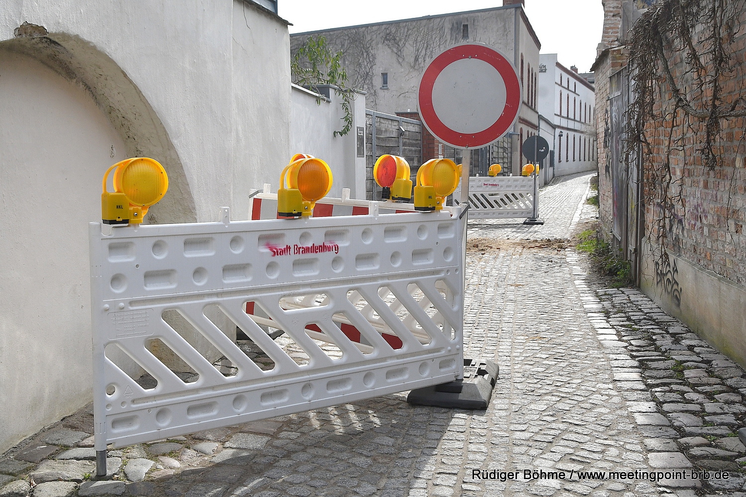 Update 12.09 Uhr: Da das abgebildete Verkehrszeichen “Durchfahrt verboten” nicht für Fußgänger, schiebende Radfahrer und Co. gilt, gab es bei mehreren Lesern Irritationen. Durften diese etwa alle die Stelle passieren und wurden deshalb die Absperrungen immer wieder geöffnet? Klarheit schafft hier Stadtsprecher Thomas Messerschmidt, der darüber informiert, dass weiter vorn - am Eingang der Kommunikation - das Zusatzschild “Gehweg im weiteren Verlauf gesperrt” aufgestellt wurde. Die Sperrung gelte laut Stadt daher für alle Verkehrsteilnehmer - Autos, Fußgänger und Co. Für Verwirrung sorgt in dem Zusammenhang nur die Auslegung der StVO zu Zusatzeichen, dort steht recht eindeutig: "Sie sind unmittelbar, in der Regel unter dem Verkehrszeichen, auf das sie sich beziehen, angebracht.” Aber auch die jetzt gewählte Variante ist durchaus machbar, heißt es aus der Brandenburger Fahrlehrerszene.